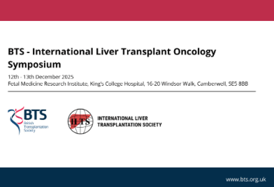BTS is delighted to announce the upcoming International Liver Transplant Oncology Symposium on December 12-13 2025 at King’s College Hospital in London, proudly co-badged by the British Transplantation Society (BTS) and the International Liver Transplantation Society (ILTS). Click here for more information.