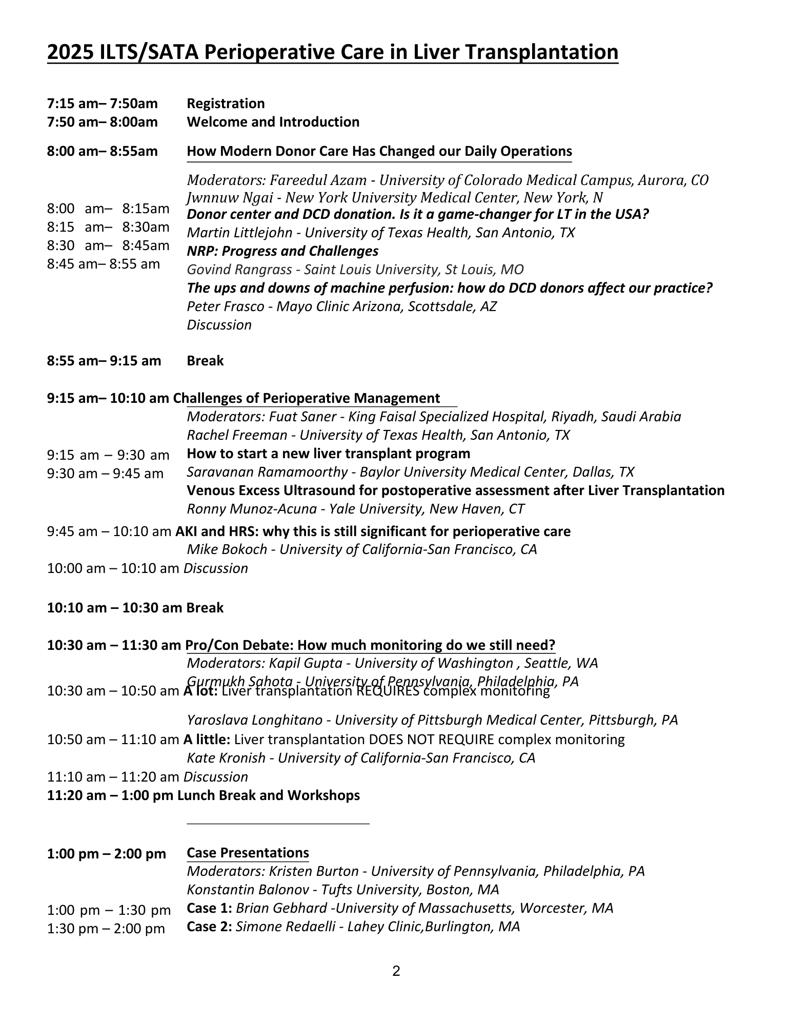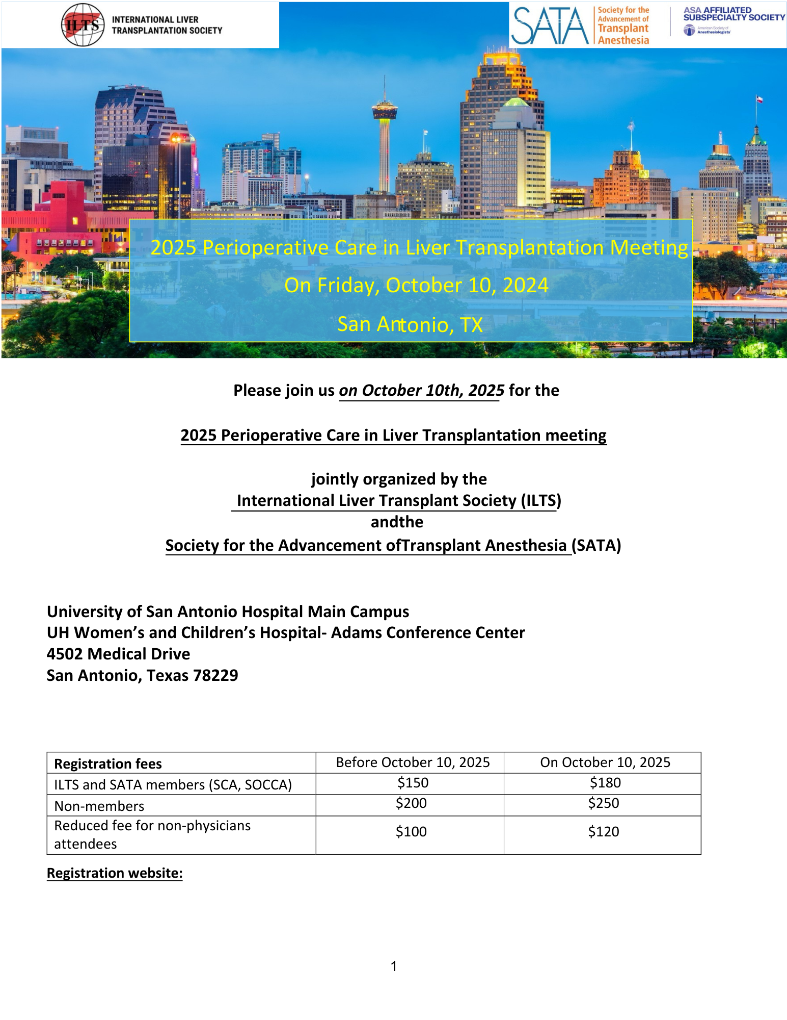 Perioperative Care in Liver Transplantation MeetingPlease join us on October 10th, 2025 for the