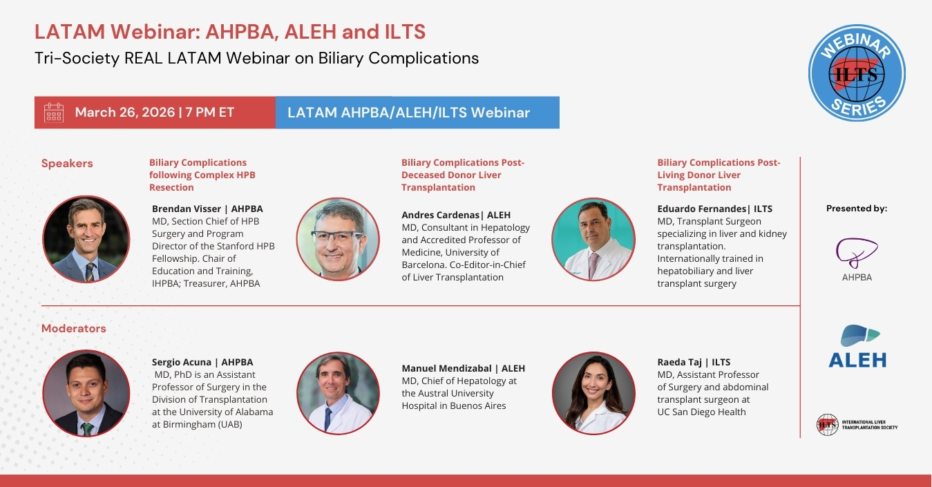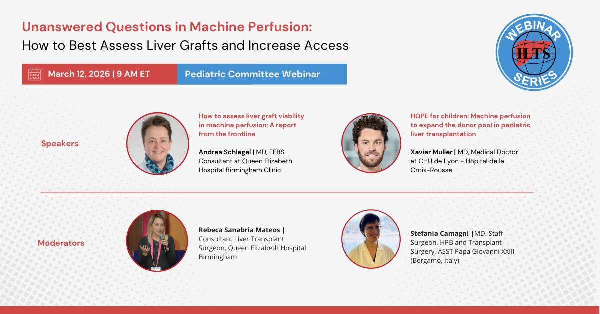 WebinarsILTS offers engaging webinars on a variety of topics related to liver transplantation, featuring experts from around the world. If you have a topic you'd like to see covered or would like to propose a webinar, we’d love to hear from you! Please fill out the request form below to submit your idea, and our team will review it for consideration. Webinar Application FormRecent Webinars